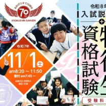 11月1日(土)に【一中入試説明会&特待生資格試験】を実施します。当日は、児童のみなさんは特待生資格試験、保護者の皆様には学校説明会・入試要項と特待制度についての説明・前期入試の傾向と対策など盛りだくさんの内容となってお…